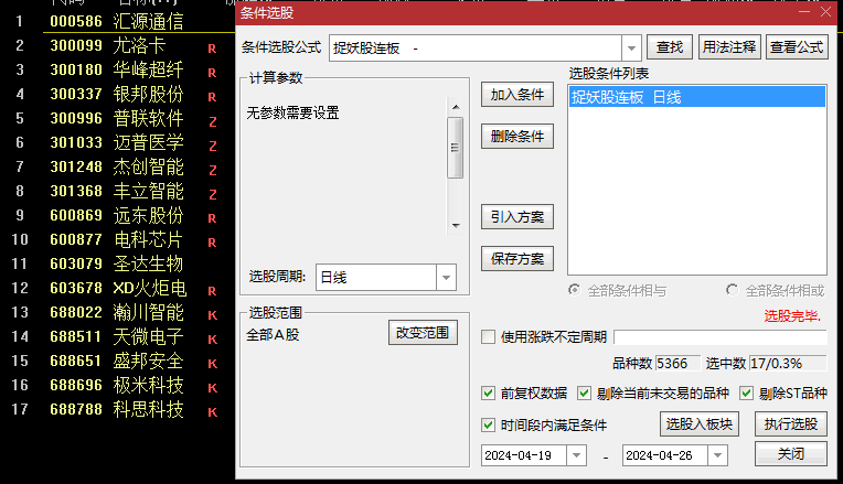 〖捉妖股连板〗副图/选股指标指标: