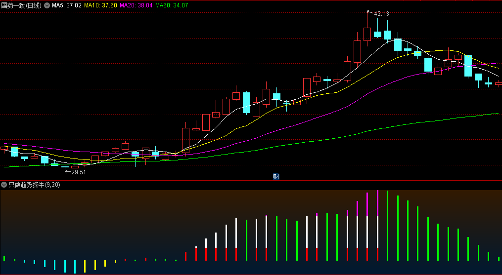 通达信只做趋势擒牛副图指标,通过观察量柱颜色的变化,结合参数的调整,在合适的时机介入和退出市场