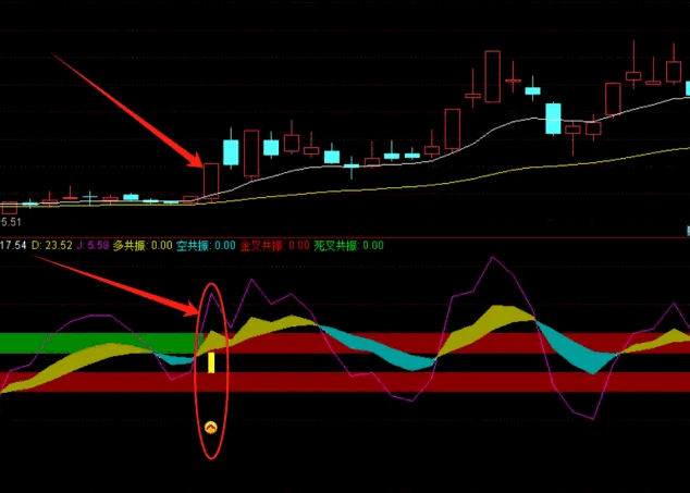 共振信号:当不同周期的KDJ线发生共振时,指标会发出“黄色柱子”信号,这一信号在短中线波段交易中具有较高的参考价值。