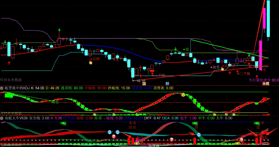量化交易系统套装指标,自创量化低吸擒牛战法-月翻倍,结合趋势做短、中、长大牛.