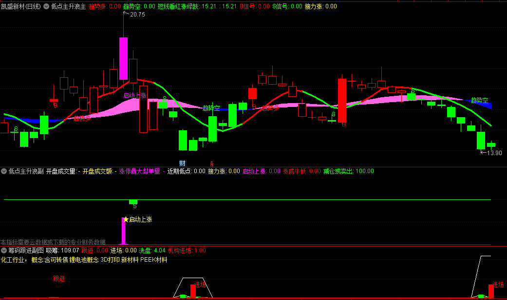 高位警示:为了避免投资者在高位追涨而陷入困境,【低点主升浪】指标还具备高位警示功能。当红线转为绿色时,意味着股票可能即将进入调整阶段,此时投资者应考虑减仓或卖出。