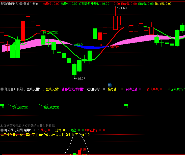 底部识别:指标能够识别股票的底部区域,并指示出吸筹、跟进、抄底黑马的时机。这对于投资者来说是一个非常重要的信号,因为底部区域的股票往往具有较高的上涨潜力。