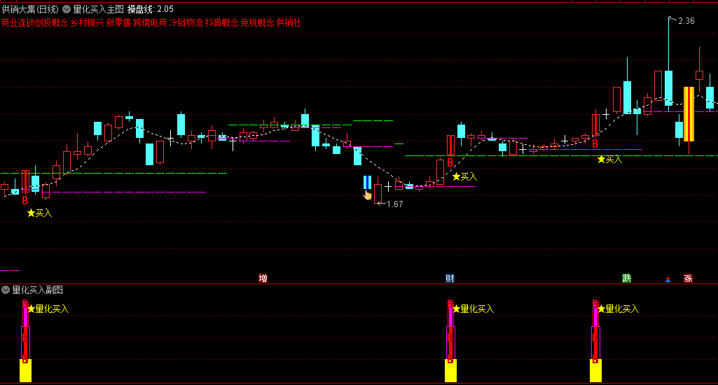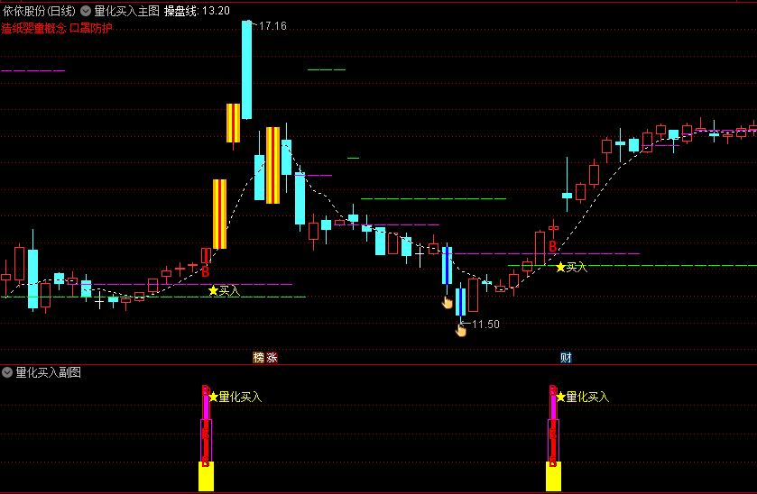 〖量化买入〗主图/副图/选股指标 成功率不错 不足是信号有点多 自己叠加热点删选 通达信 源码