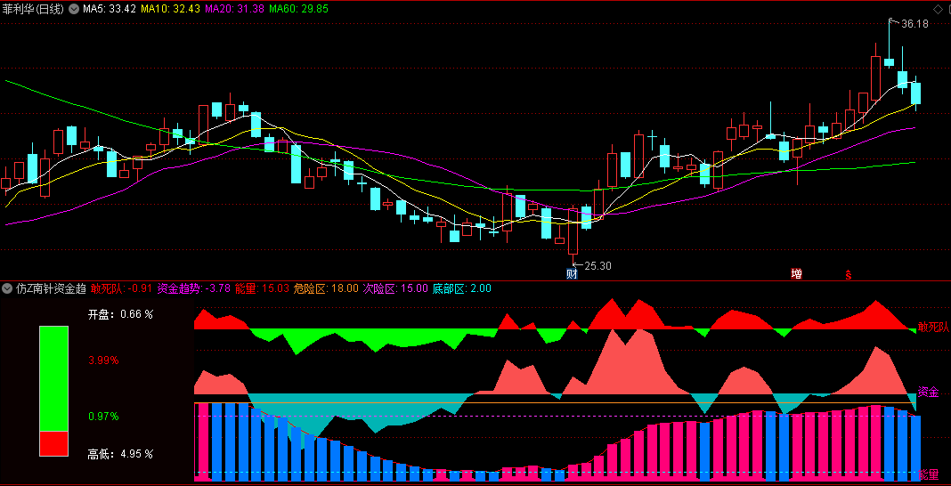 三合一资金分析体系:本指标将Z南针资金趋势、敢死队资金和融胜解盘能量潮指标融为一体,形成了一个全面、综合的资金分析体系。投资者可以通过本指标,同时观察多种资金指标的变化,更准确地把握股票的资金动向和趋势。