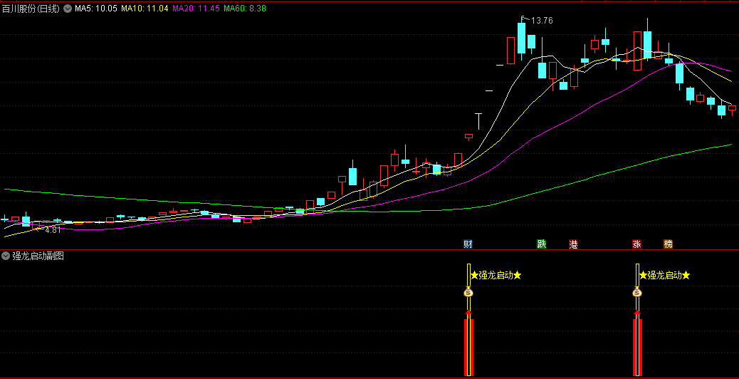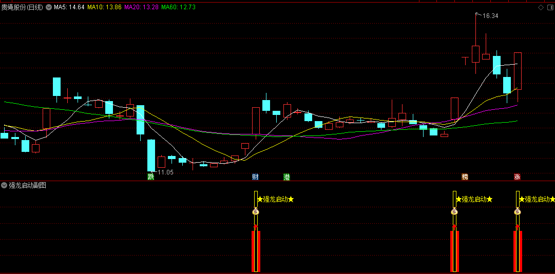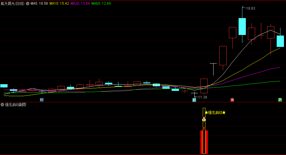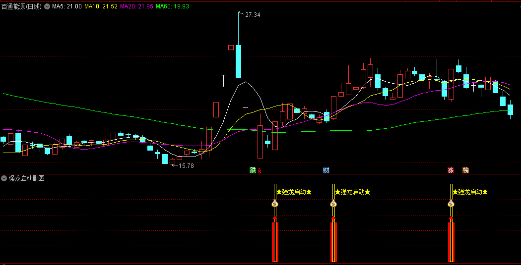 强龙启动副图指标:底部强势龙头开始启动,见到双涨信号就介入,不含未来函数,此指标没有加密。