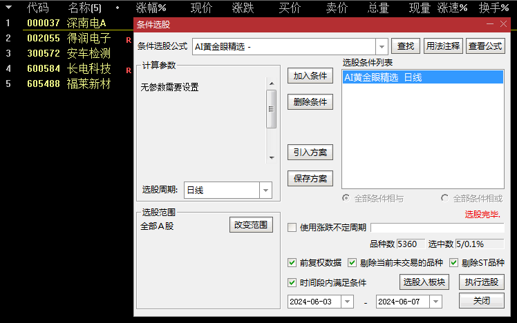 3、【AI黄金眼精选】 增加了趋势强度因子,出票数量相对较少,更方便大家选择。