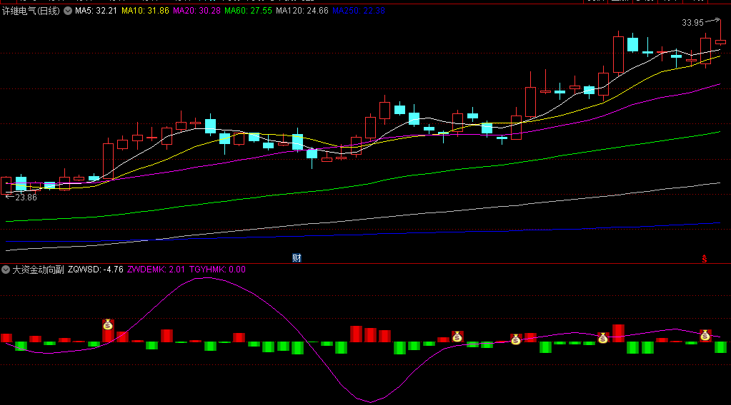 “钱袋子”信号:当指标出现“钱袋子”信号时,这是一个值得投资者重点关注的信号。该信号通常表明大资金动向明显,可能是选股的重要参考依据。
