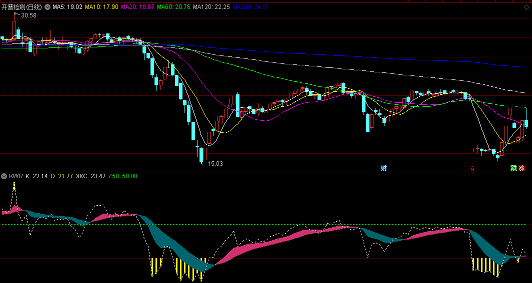 但是,威廉上穿50轴线,就是大肉,结合KD色带,可以更好的读懂强弱。周期250.