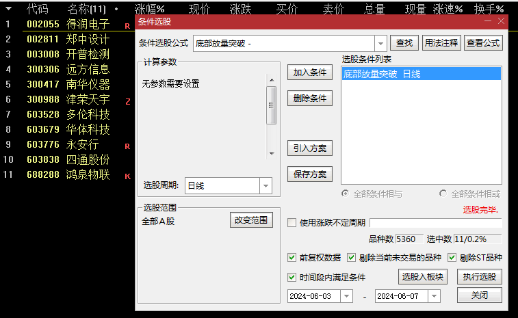 底部放量突破副图/选股指标,提供了挑选底部放量突破个股的参考依据,帮助投资者更加精准地把握市场机会