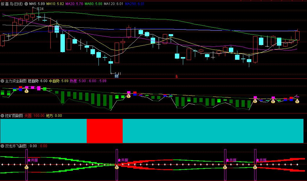 〖双龙起飞〗主图/副图/选股指标 双钱袋共振 一路红色一路多 看见绿色就下车 通达信 源码