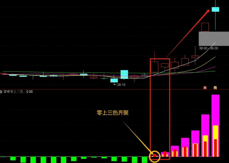 今天萧哥再分享一个简洁易用的副图指标:【萧啸零上三色】。