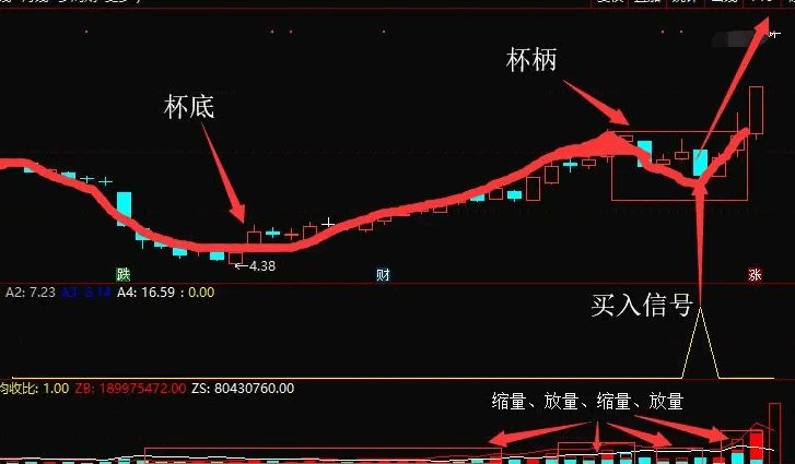 柄的形成:在股价上升到一定高度后,开始停止上升并短暂回调挖坑,形成杯子的柄。柄的形成应以缩量浅幅回调为佳,表明股价在回调过程中并未引发大量卖盘,市场仍然保持强势。