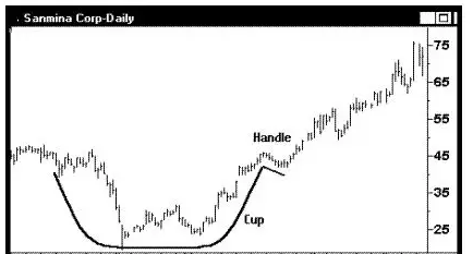 欧奈尔杯柄形态是一种典型的持续上升形态,它由两部分组成:杯和柄。在一段上涨行情之后,股价开始回落形成圆形的杯底,接着是一段短暂的盘整行情,即柄。当柄的盘整被突破时,价格将延续此前的上涨趋势,形成新的上涨行情。