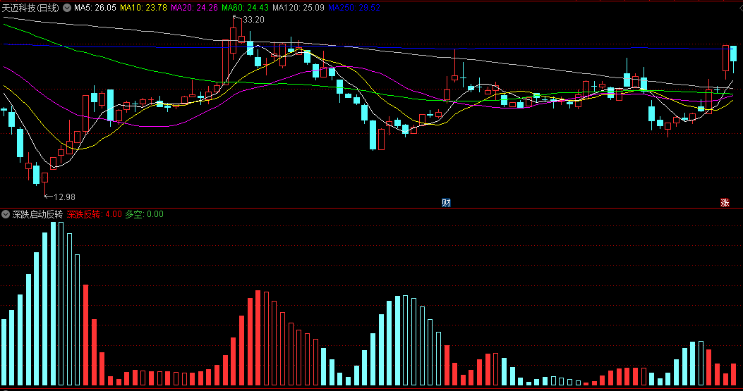 通达信【深跌启动反转】副图指标,红实芯判断反转,出现时,大概率是波段反转的位置!