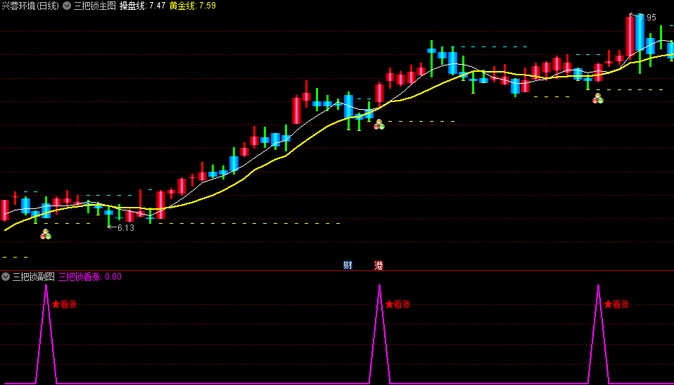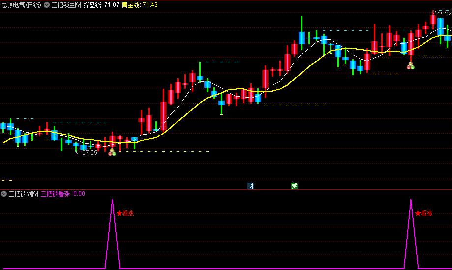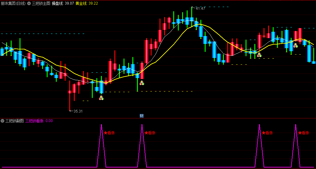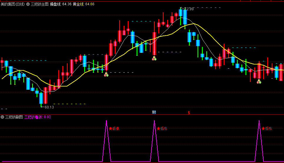 立桩量信号:立桩量是指股价在上涨或下跌过程中,某一天的成交量异常放大,形成一根长长的成交量柱。这种成交量柱的出现,往往预示着股价即将发生重要变化。在【三把锁】指标中,立桩量的出现被视为重要的买入信号。
