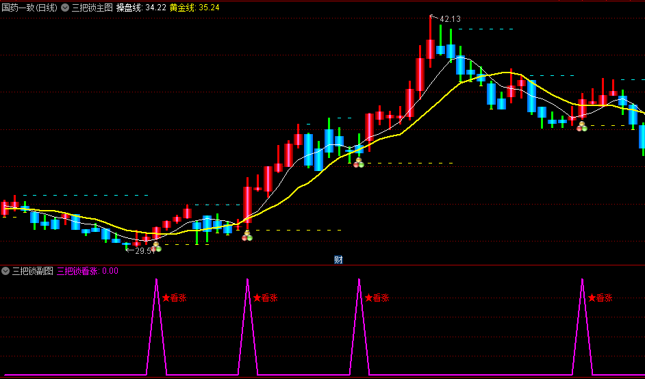 红色K线持有:在发出“三把锁”信号后,若股价沿着操盘线和黄金线上涨,且K线呈现红色,投资者可继续持有股票,享受股价上涨带来的收益。