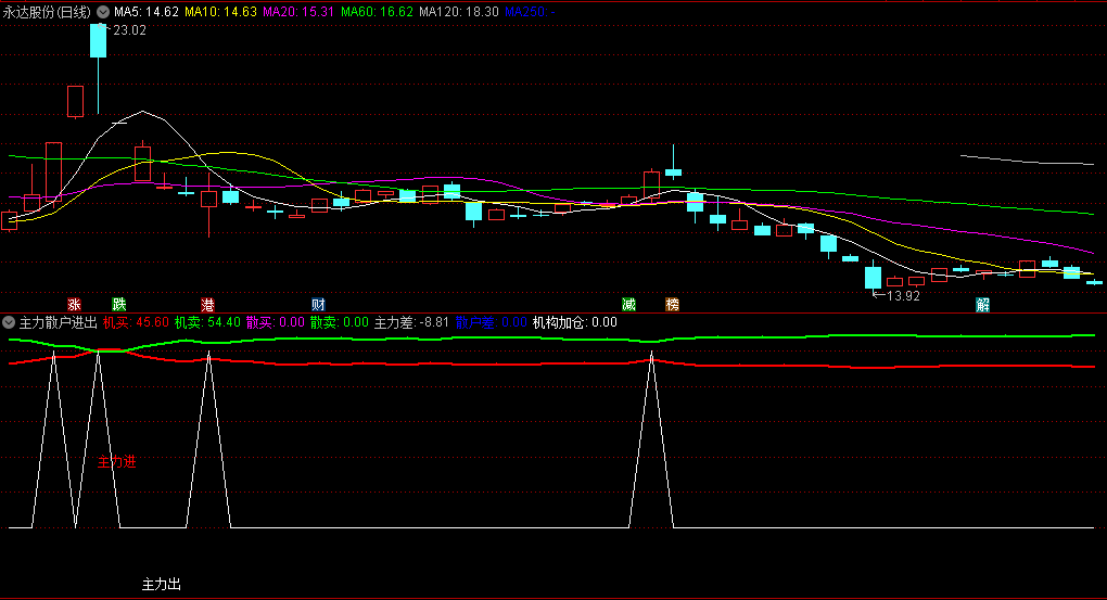 阿牛原创,利用VOL和均价估算主力资金、散户资金的进出情况,以直观的彩色线展示出来,让你一目了然。