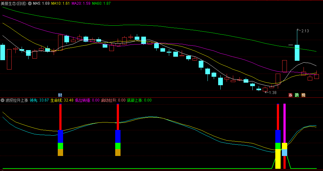 副图显示:在股票K线图的副图区域,该指标会以特定的图形或颜色变化来显示股票的波段拉升情况。投资者可以通过观察副图的变化,来判断股票的买入和卖出时机。