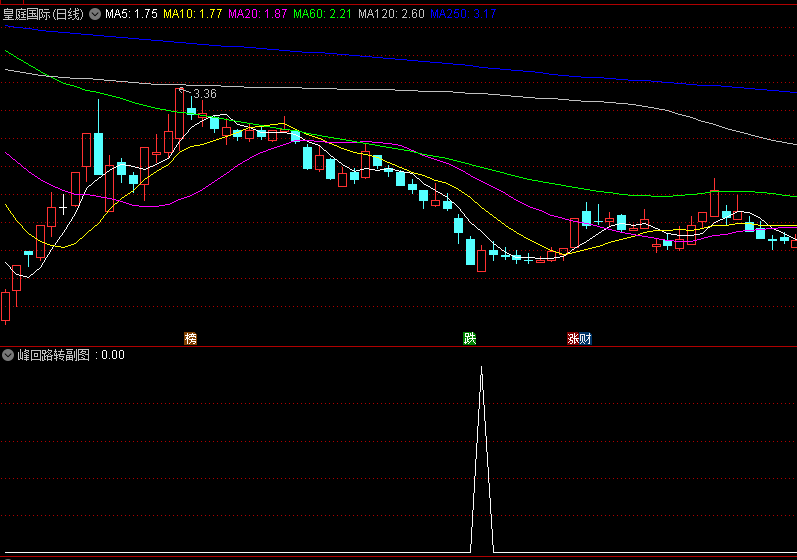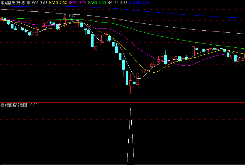 【峰回路转】指标包括副图和选股功能,还可以设为预警。我在这里要特别强调的是止损的重要性。出信号后,如果两天内跌破预警信号日的开盘价,就要坚决止损。切记!切记!