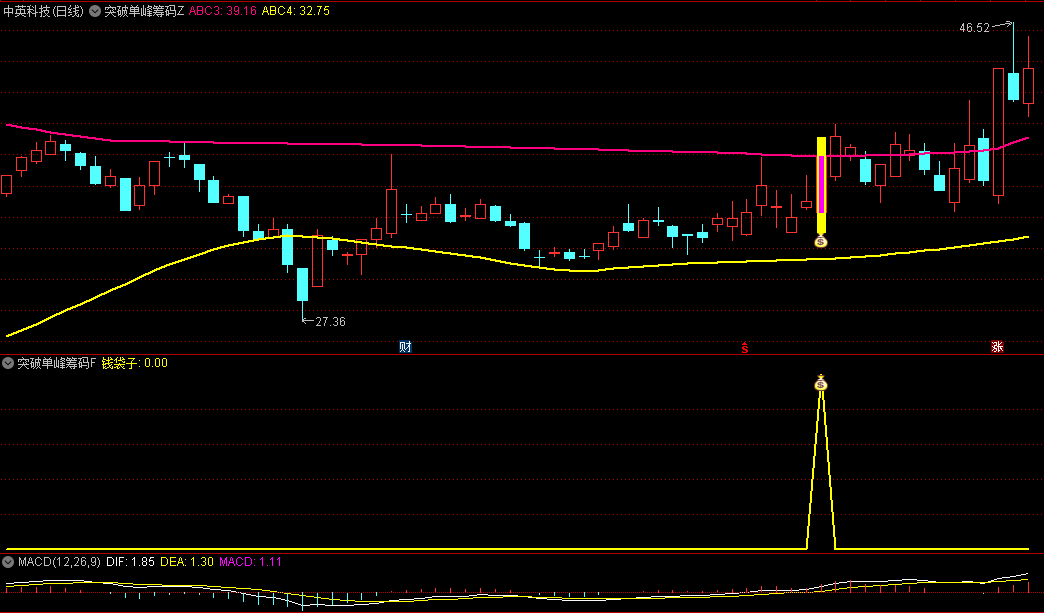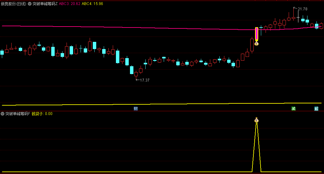 【突破单峰筹码密集】是一个基于筹码分析理论的通达信指标,用于识别股价在经历一段时间整理后,形成的低位单峰密集形态,并监控股价是否有效突破这一密集区域,从而捕捉潜在的上攻行情。