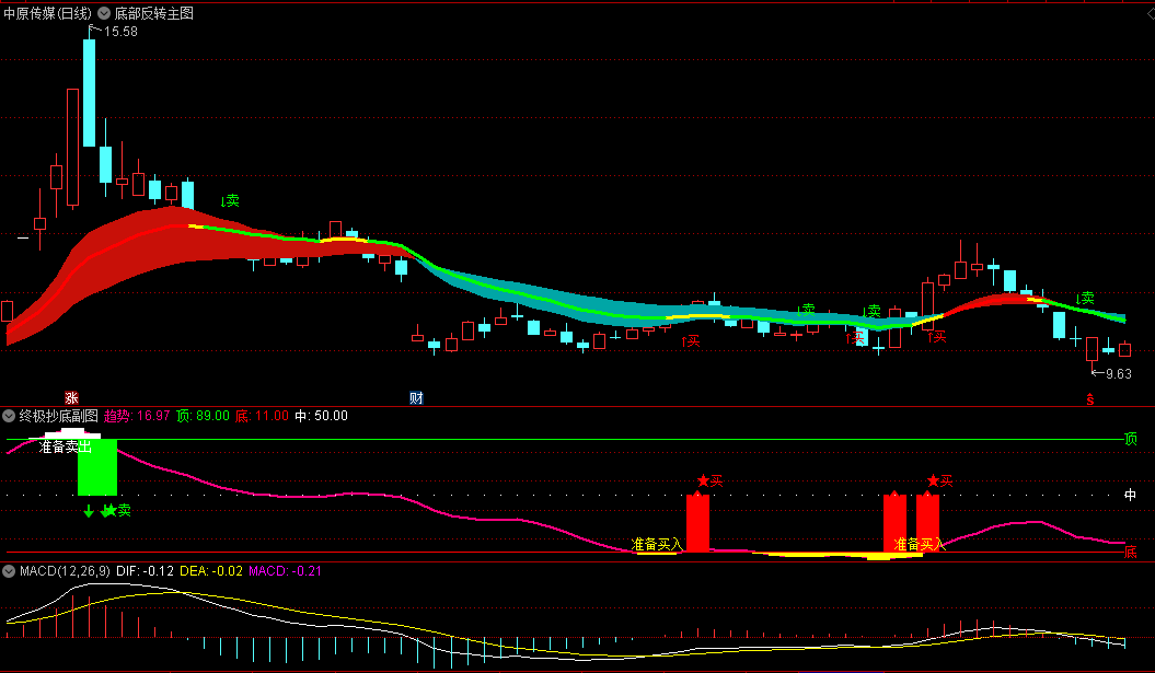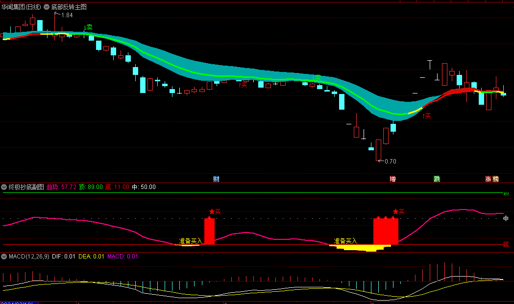 功能:作为大波段趋势类指标,主要用于精准判断趋势的顶部与底部反转点,为投资者提供明确的买卖信号。
