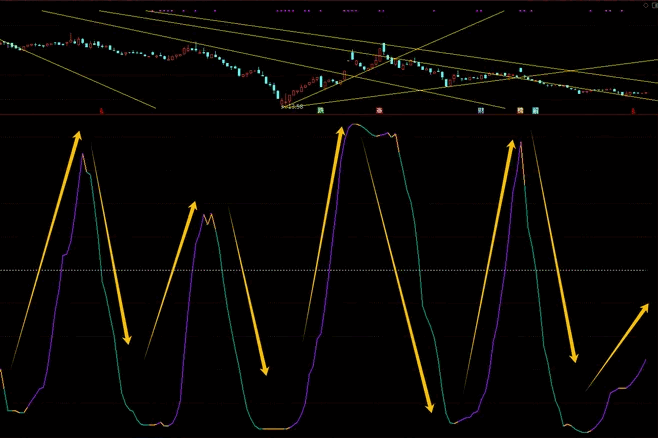 此外,RCI的不同周期线(如短期黄色线、中期蓝色线、长期绿色线)之间的交叉也提供了额外的交易参考。例如,短期线率先穿越0轴并形成上升趋势后,中期线和长期线若随后也相继穿越,往往预示着趋势的进一步确认和强化。