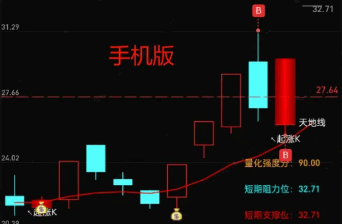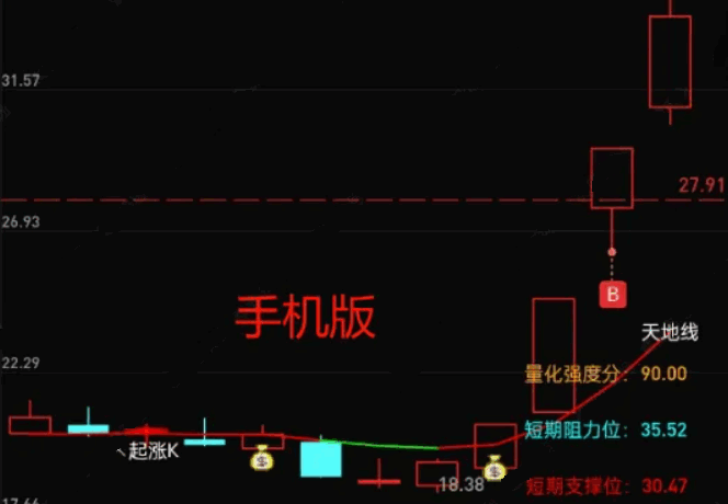 手机版起点倍量擒牛主图/选股指标,专为手机用户设计,优化了红色做多线出现时的买入信号!