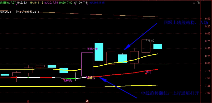 趋势判断:中轨线的方向直接反映了市场的整体趋势。当中轨线向上运行时,表明市场处于上升趋势中,投资者应保持积极乐观的态度。