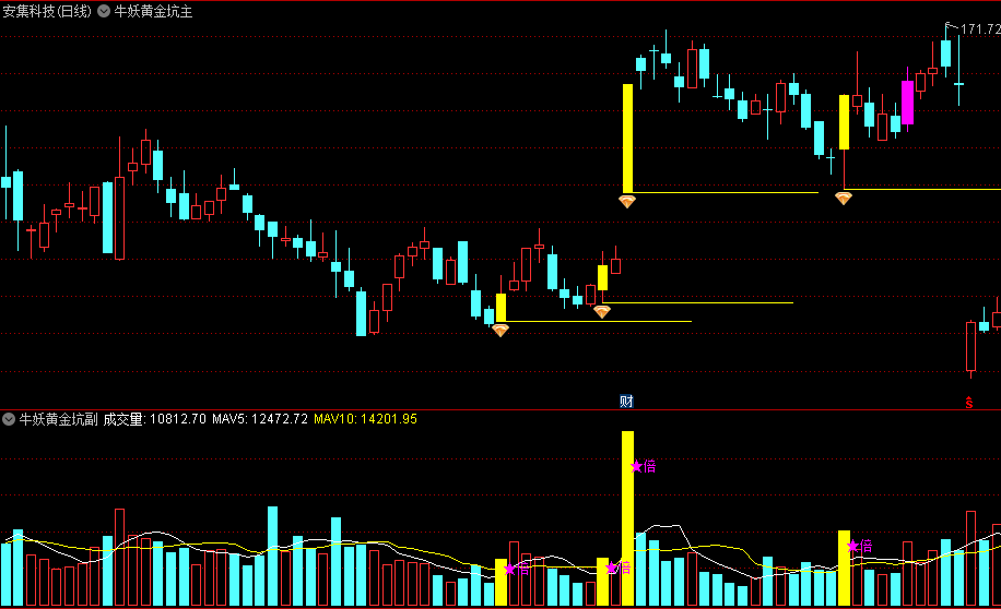 “牛妖黄金坑”指标是一套专为捕捉股市中强势股主升浪行情设计的交易系统。其核心在于识别并利用“凹口平量柱”这一独特的成交量形态,该形态是主力资金在突破前的重要蓄势信号。通过主图、副图及选股指标的协同作用,投资者能够更精准地把握买入和加仓时机,从而在股市中获取超额收益。