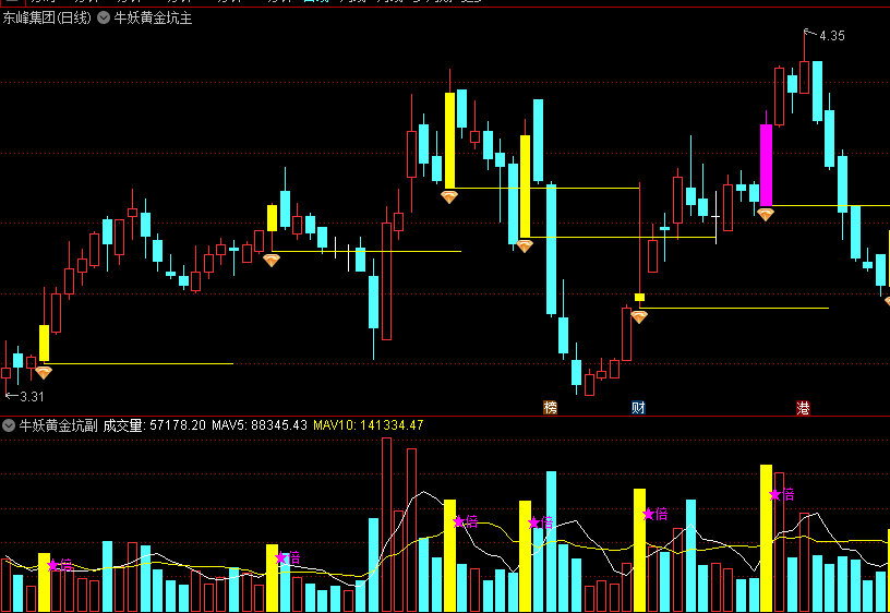 量能观察:投资者应密切关注市场成交量的变化,特别是当第一根放量柱(倍量柱或高量柱)出现时,这往往是主力资金开始进场的信号。