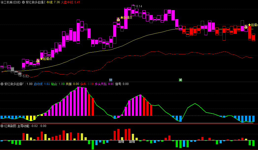 来自擒龙战法中的【紫红做多起爆】主图/副图/选股指标,紫色线判断长期趋势或强势启动,红色线判断短期波动或确认做多