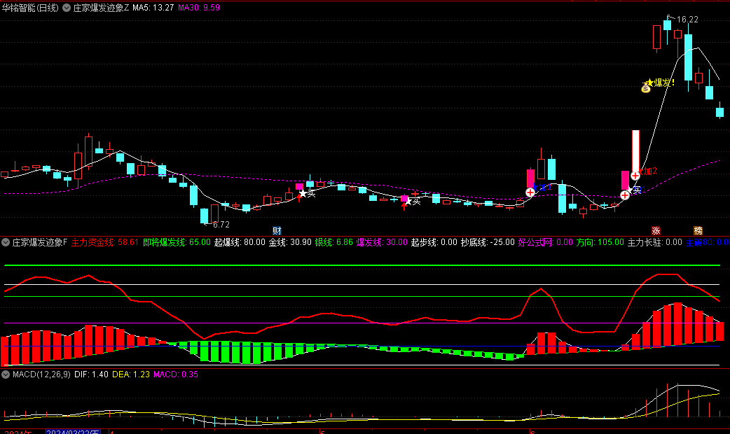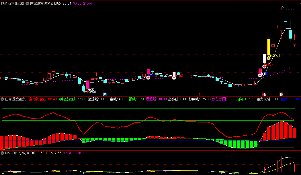【庄家爆发迹象】是一套专为捕捉主力资金动向而设计的指标套装,包括1个主图指标、1个副图指标以及3个选股指标。