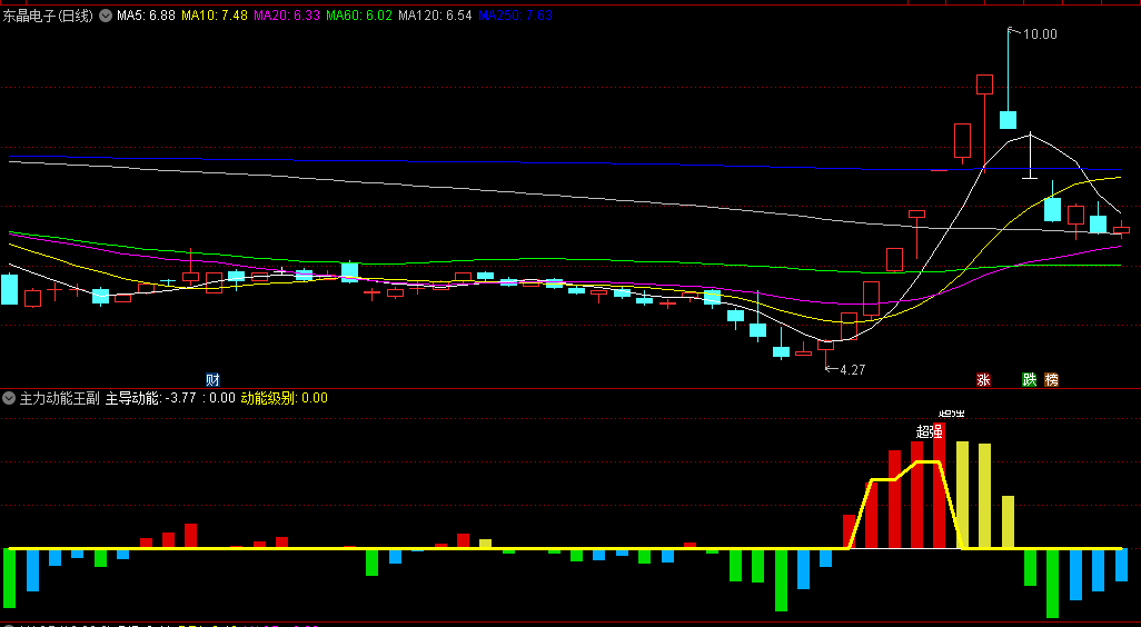 颜色编码识别:动能级别通过不同颜色的线条直观展示,红色线代表动能持续增强,是市场强势的信号;而绿色线则表明动能减弱,可能预示着市场调整或反转。