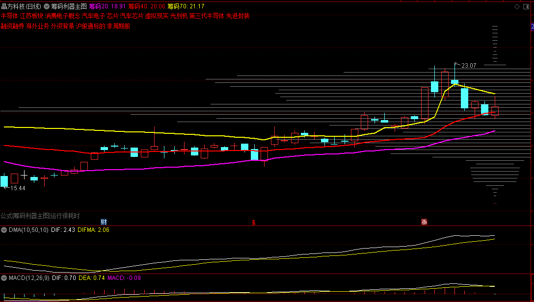 筹码利器主图指标,回调洗盘至40线有很强支撑,上穿70线后突破平台回调不破,配合成交量反转介入