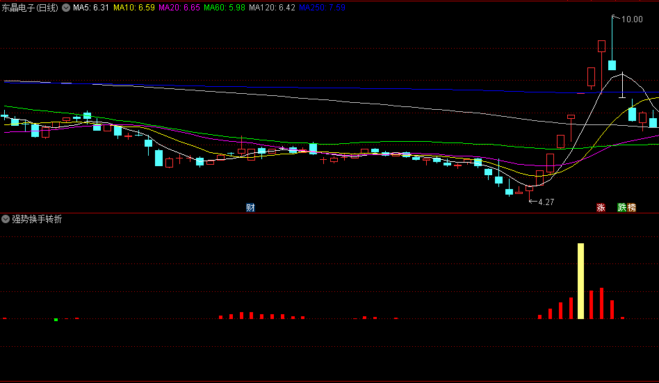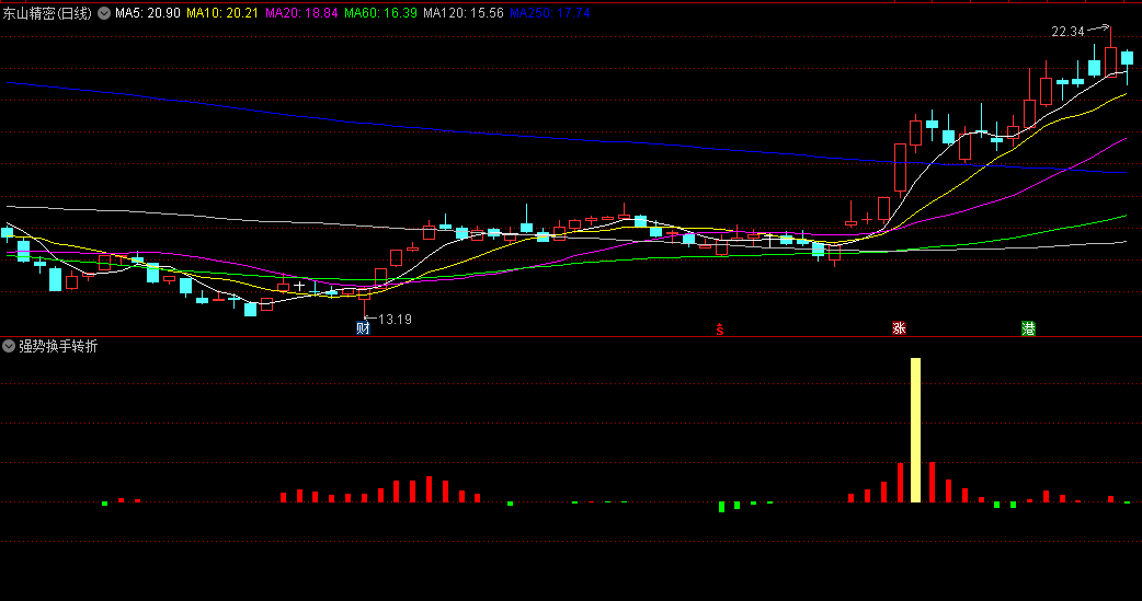 这里给出的强庄换手买信号,是转折点,是经历了一定涨幅之后,出现强势换手的个股。