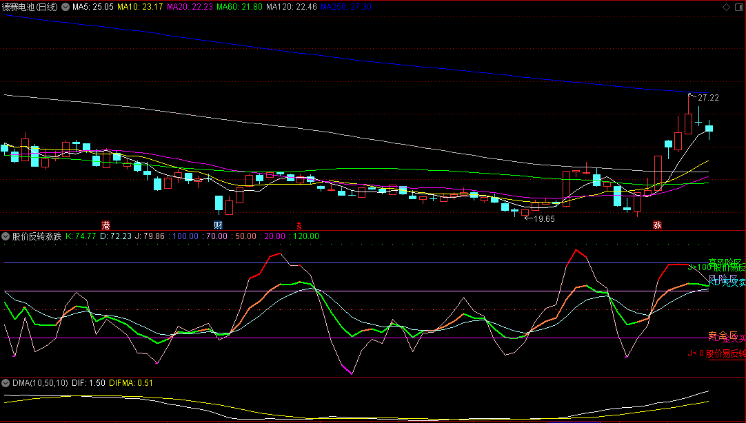 股价反转涨跌副图指标,用KD定义两种情况,股价反转上涨,股价反转下跌!