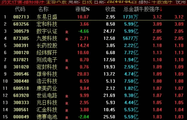 牛股强序,反映的是已经走牛的股的强度排序,个位数是10天内的封板数,小数点后面反映的是10天内相同板数的个股强的排在前面