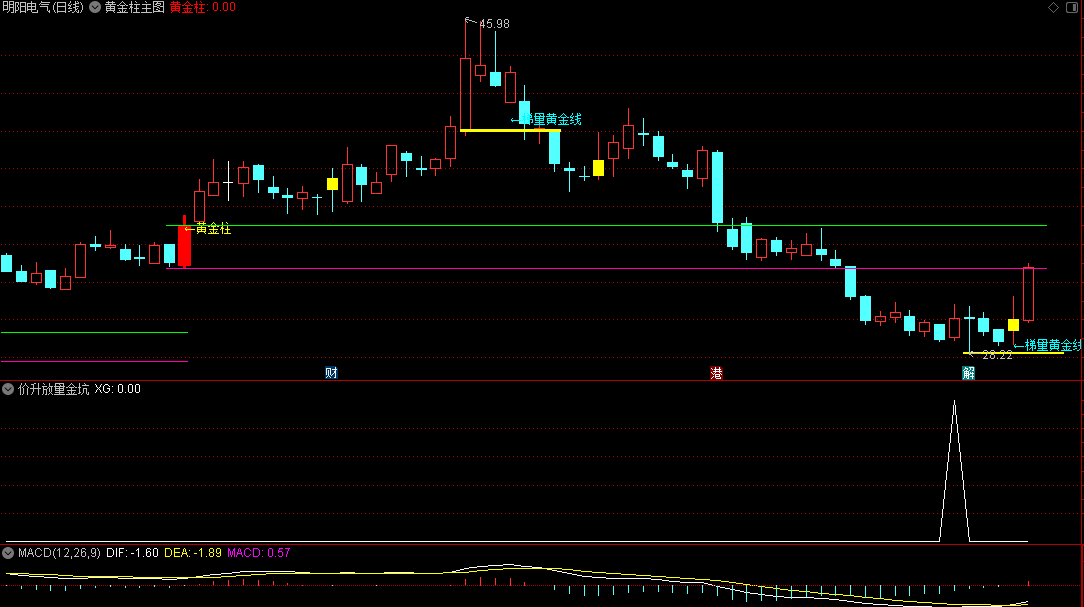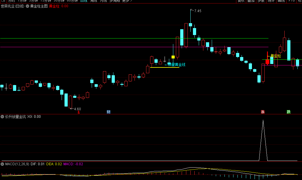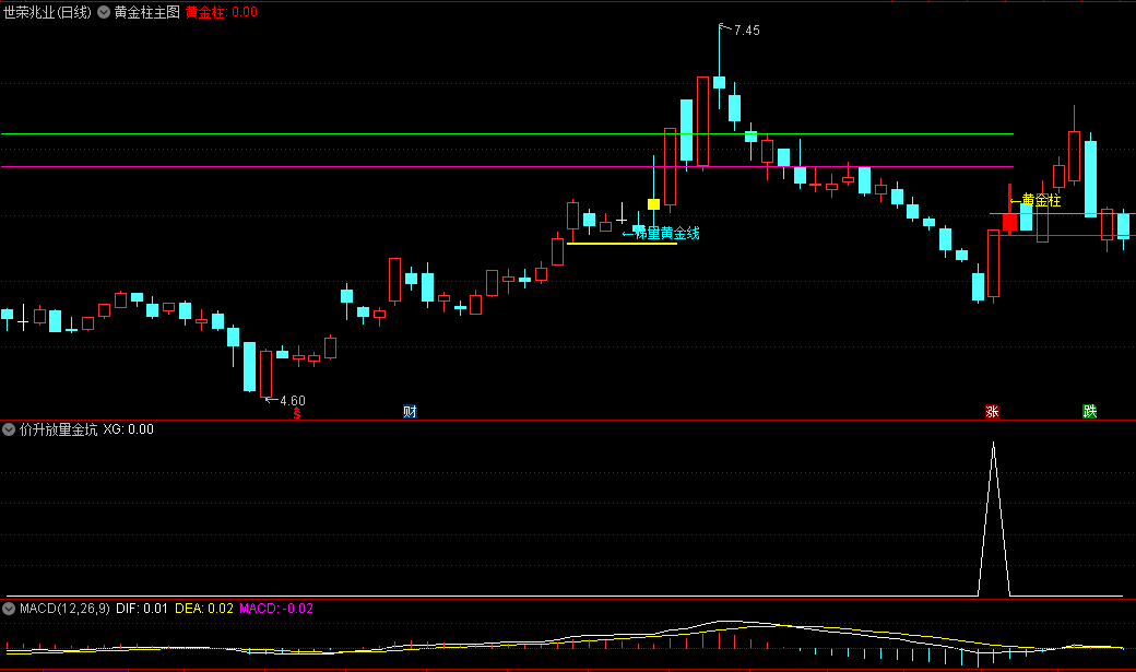 【黄金柱】主图+【价升放量金坑】副图/选股指标,自用组合,三种黄金柱标识识别入场机会!