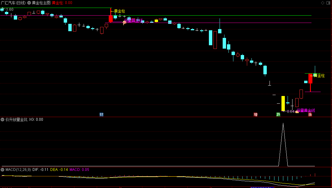 黄金柱分为三种,分别是倍量黄金柱、梯量黄金柱、平量黄金柱,这三种都用不同颜色给你标注出来了。