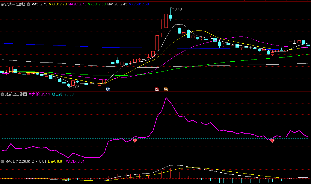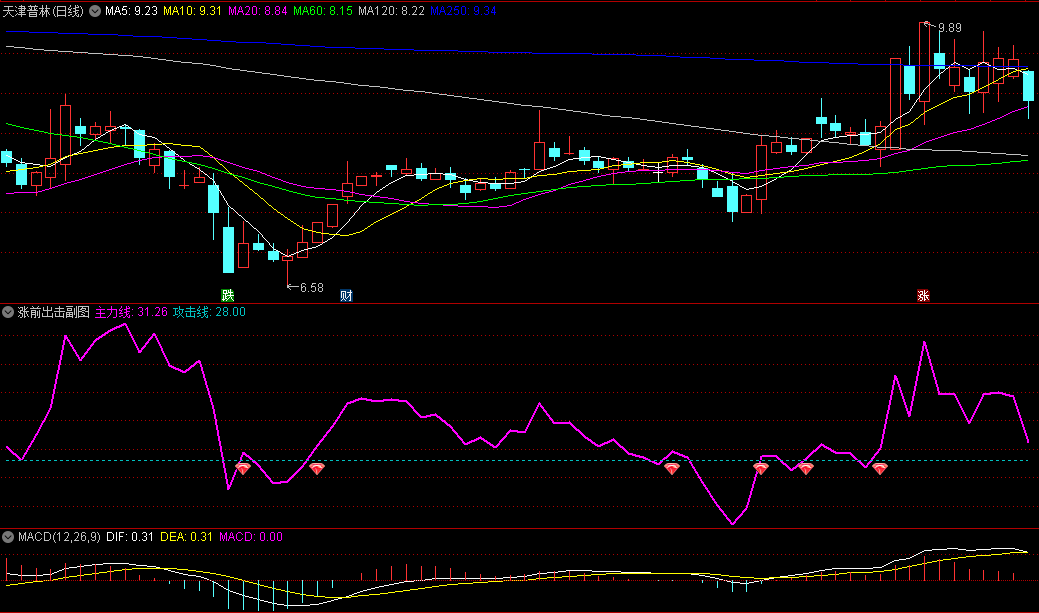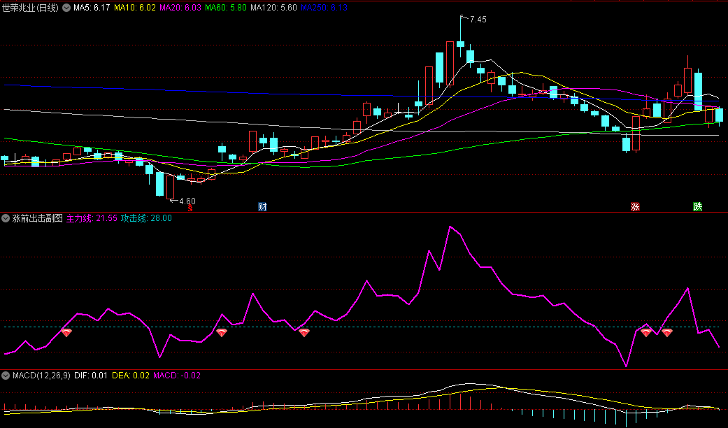 1、紫色攻击线上穿墨绿色横线时,发出信号,进入强力拉升期;