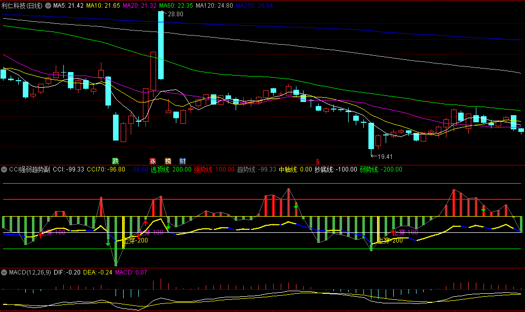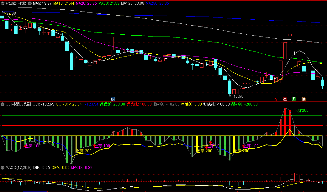 DRAWICON(CROSS(-100,CCI),CCI,2); {下穿止损信号}以近期热门股「XX 科技」为例: