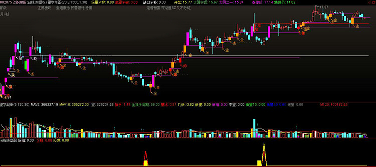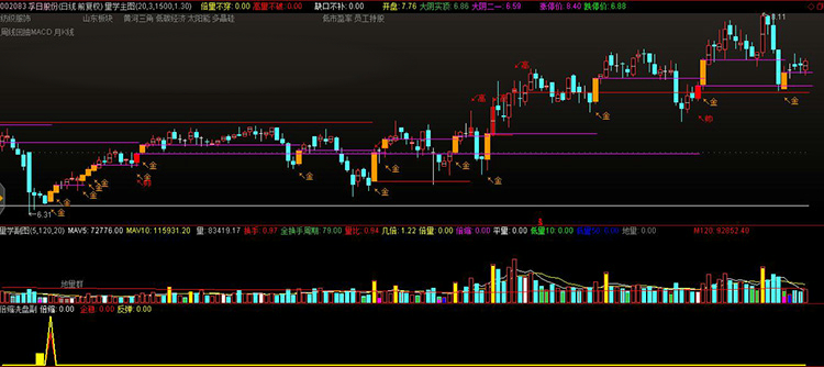 股价连续上涨并且创出了近期新高,对应的成交量也温和放大,其换手率多在5%左右,比前期成交量成倍地增长,且先后突破了40日均量线以及135日均量线,这说明了是新资金在入场,是少数先知先觉的主力得到上市公司利好的内部消息在提前收集筹码的行为。