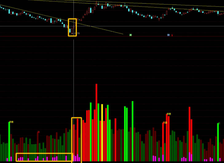 量能反应的是交易的活跃度,量能越高,说明市场越活跃,也意味着有更多的人关注市场。当股价持续下跌,越来越多的人会对市场失去信心,从而导致市场活跃度的降低,而量能的不断萎缩正是对这一现象的具体体现。但当股价跌到主力认可的位置后,主力们就会开始悄悄动作起来,从而影响到量能的变化,尽管主力开始影响了量能,但股价也不一定马上就开始止跌,毕竟能捡到更便宜的筹码,未来就有更多的获利空间,而当主力搜集到了足够的筹码后,会有更积极的操作,量能也会有更加明显的变化,进而影响到更多人的关注,人多了,活跃度高了,价格也就有了更加显著的变化,价与量相互影响,再加上主力的添油加醋,新的一轮行情就此展开,这就是亮先价行的含义。