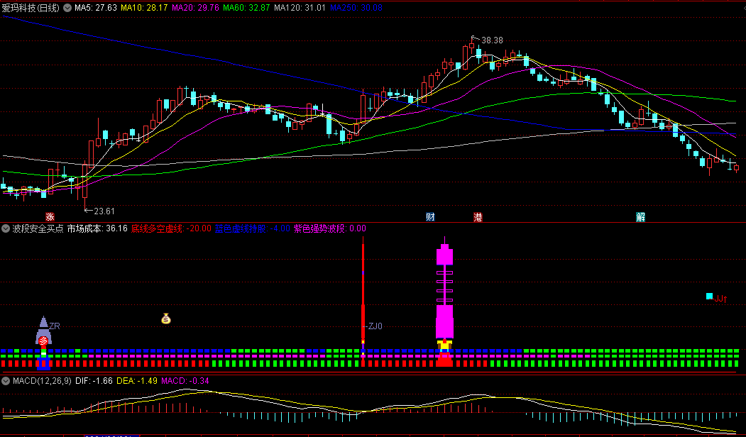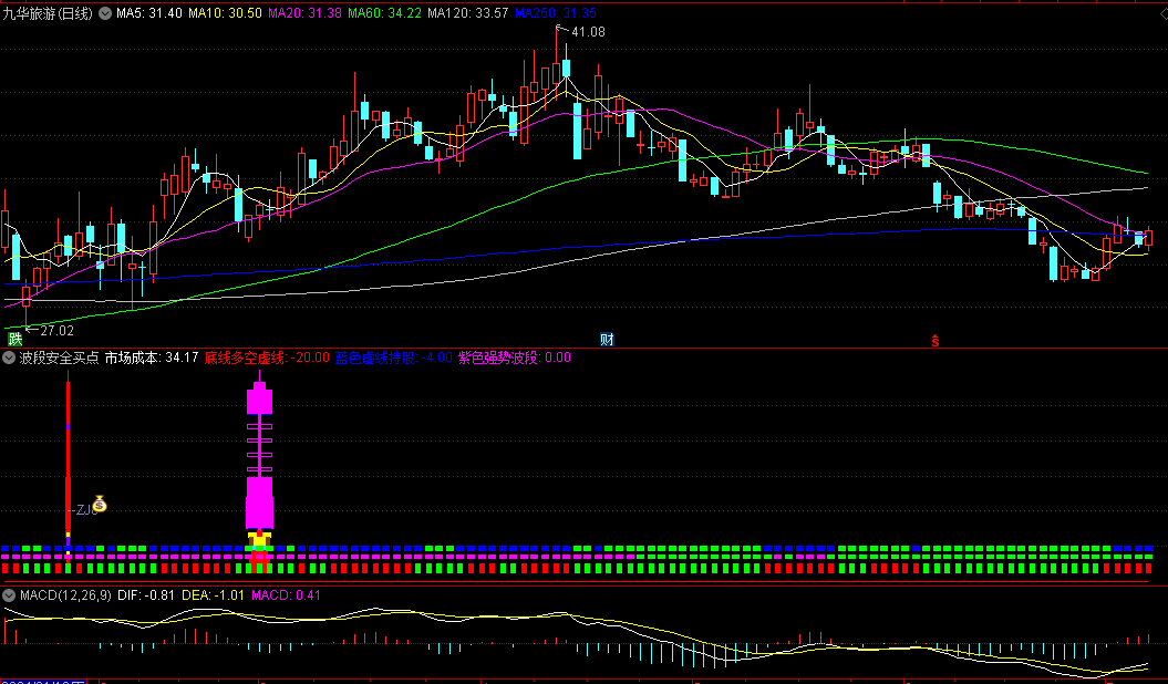 自编的波段安全买点副图指标是一个综合性的技术分析工具,它结合了成交量(VOL)、移动平均收敛发散指标(MACD)、相对强弱指数(RSI)、随机指标(KDJ)以及大盘趋势线等多个维度的信息,以综合判断波段买点的出现。