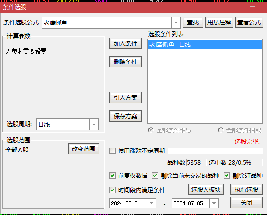 〖老鹰抓鱼〗副图/选股公式 非常简单的一行源码 胜率高 通达信 源码