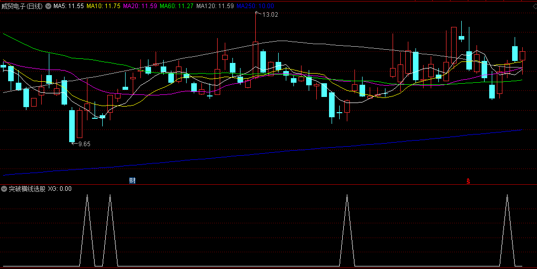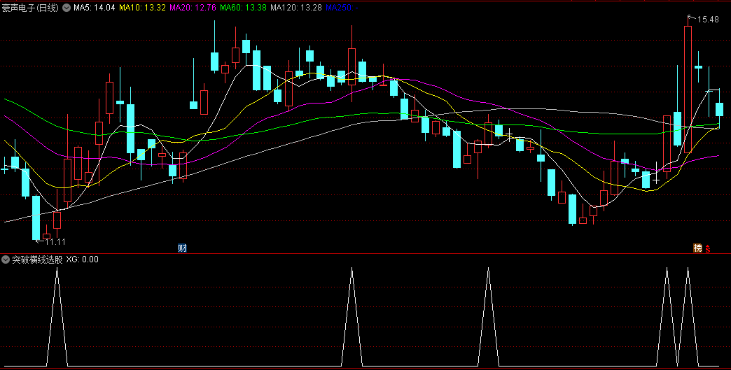 【突破横线选股】,在此表示“突破MACD最长绿柱对应的K线最高价选股”!无未来函数!