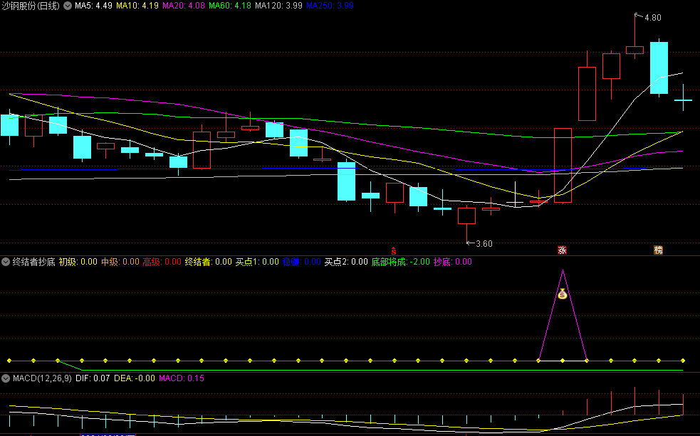 老汪自用的【终结者抄底】副图指标,综合多个指标编写而成,感觉非常不错,源码分享!