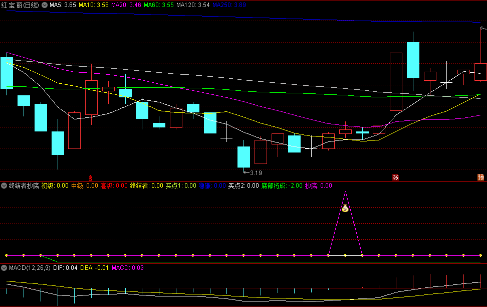 一个老汪自用的抄底指标,是本人综合了几个高手的作品编写而成的,自己用了还不错,所以分享出来。