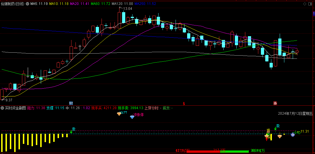 〖实时资金〗副图指标 观察实时量能资金进出情况来判断主力的走向 通达信 源码