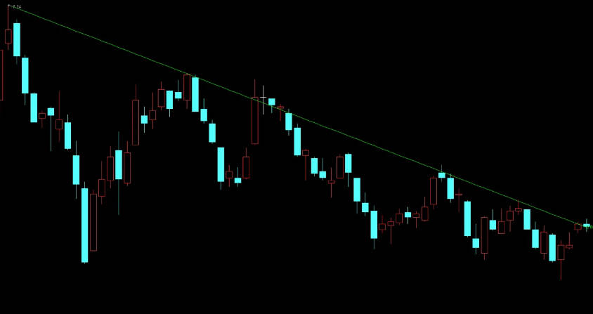 本人研究发现,下降趋势有两种,一种是上述提到的高点连接的切线,一种是用长期的均线。比如某支股票长期被99天均线压制,很长的区间内(比如一年、两年或者数月)每当股价最高价涨到99天均线就下跌,很多聪明人就思考了,如果某天股价收盘突破了该99天均线,次日不就是很好的转势试错买点吗!是的,当然是转势买点。又有人会想,那如果不是99天线的压制能不能选出来,比如说庄股用了144天均线,或者不知道用的哪条均线,能不能选出来,答案是能,这就是电脑的优势,我可以试,一条均线一条均线的测试,总有一条适合你的操盘线。本期好评满50条,下期公开一线法选股公式,突破高点压制的均线选股法。这些内容都是本人潜心研究殷保华技术的总结,仅供参考。突破之后不是让你无脑追高买入,突破趋势线,次日在趋势线位置阴线低吸买入风险最小。